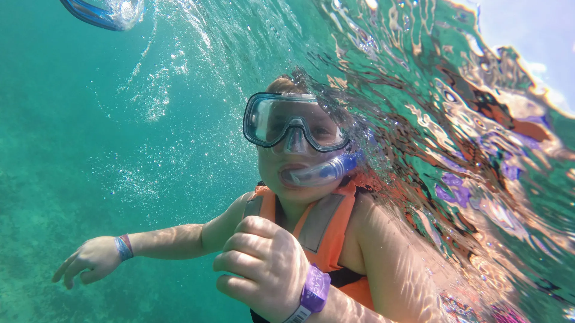 - Complete snorkeling equipment (mask, snorkel, fins, life vest)